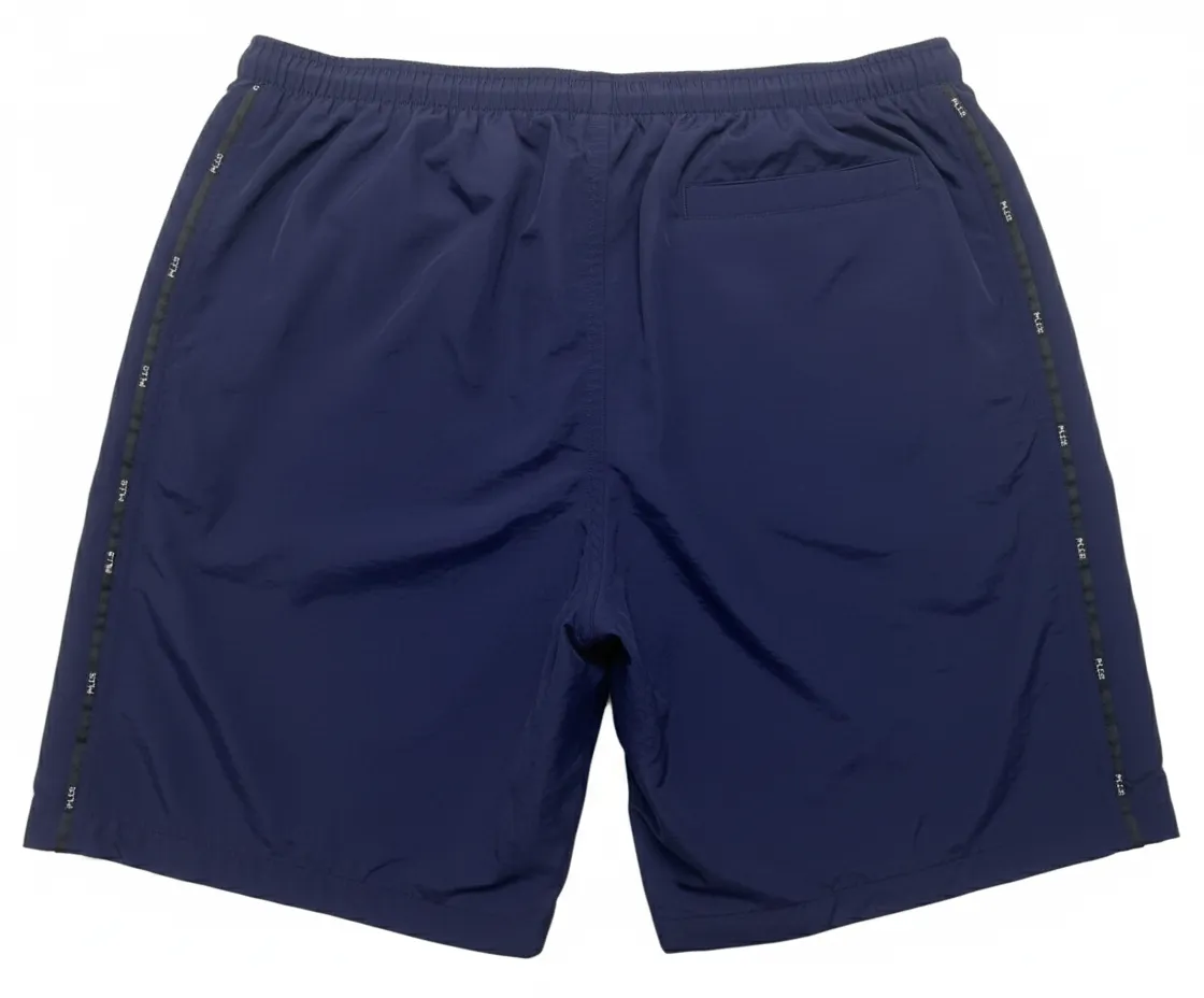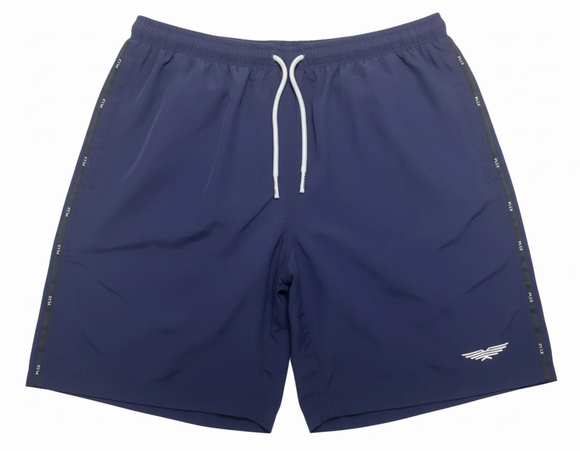 Classic men’s swim shorts with sporty side tape design, chlorine resistant fabric, and UPF50+ sun protection. Ideal for OEM/ODM swimwear wholesale.