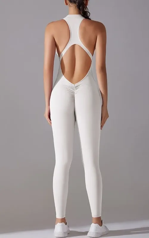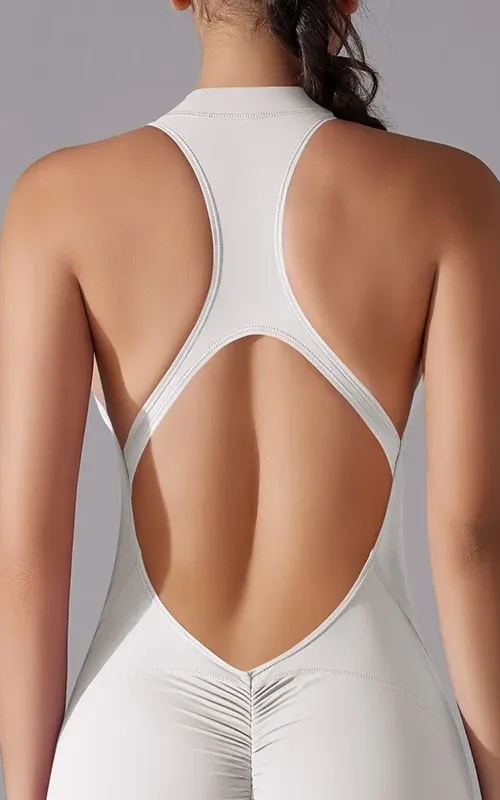 Custom Sexy Backless Sports Zipper Front Jumpsuit for Women High Stretch Workout Outfit