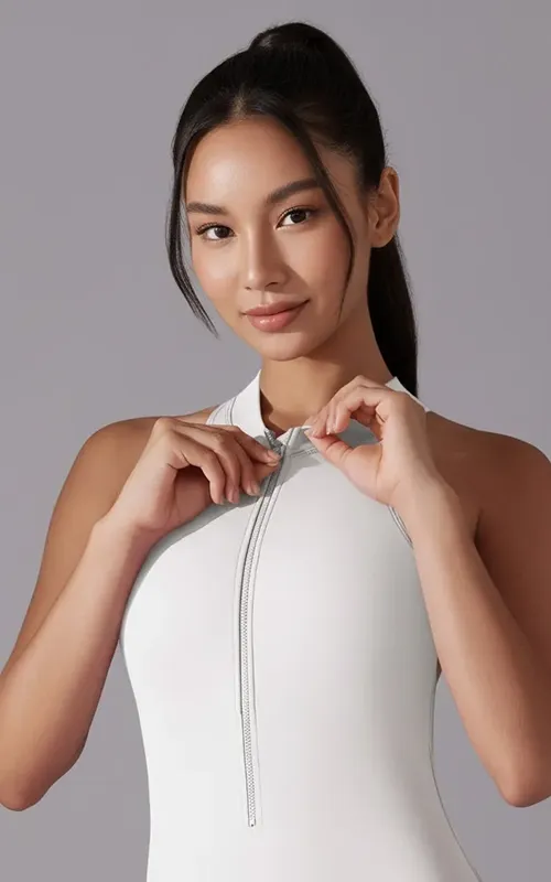 The Zipper Front Backless Active Jumpsuit – Women’s Workout One Piece is designed by a professional OEM women’s activewear manufacturer and wholesale supplier in China. Featuring premium breathable fabric with four-way stretch, this jumpsuit offers comfort, durability, and style. Its zipper-front closure and backless slim-fit design make it ideal for yoga, pilates, gym, dance, and everyday athleisure. Available in custom sizes, colors, and private label branding, this one-piece jumpsuit is perfect for bulk buyers, distributors, and fitness brands seeking high-quality custom activewear.