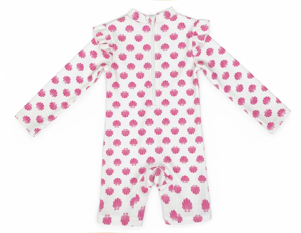 Long sleeve rash guard design with ruffle shoulder for extra style
