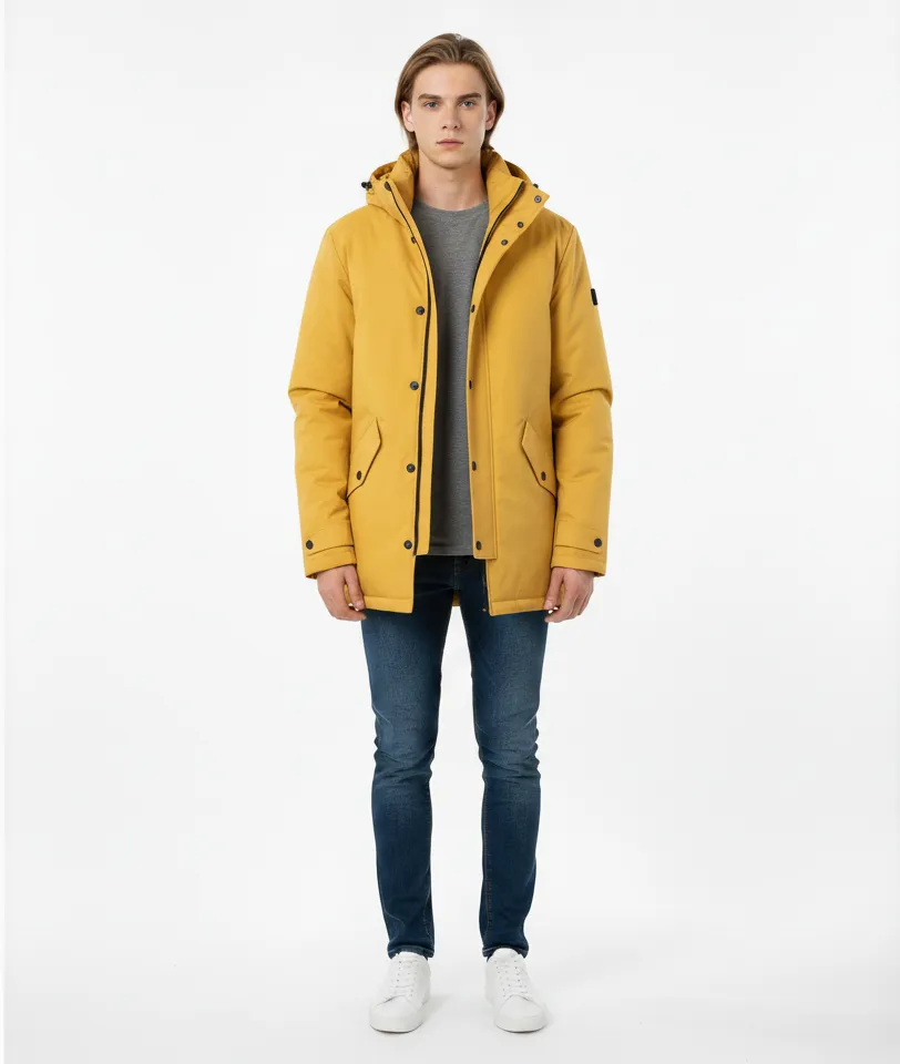 This men’s waterproof winter coat provides windproof protection, soft insulation, and reliable warmth for outdoor activities or daily wear.