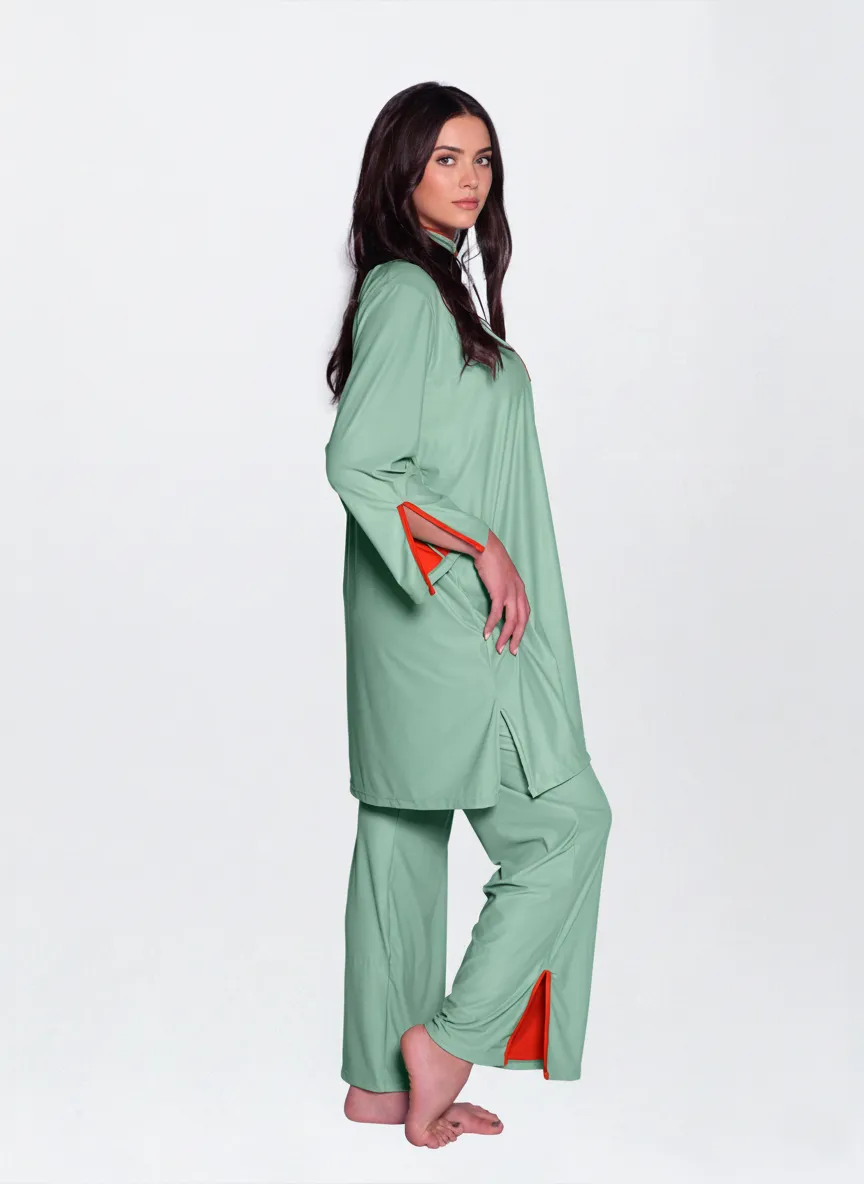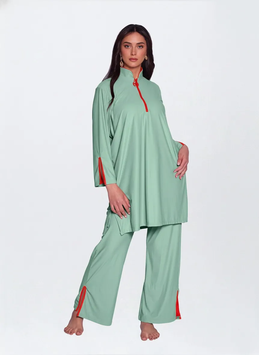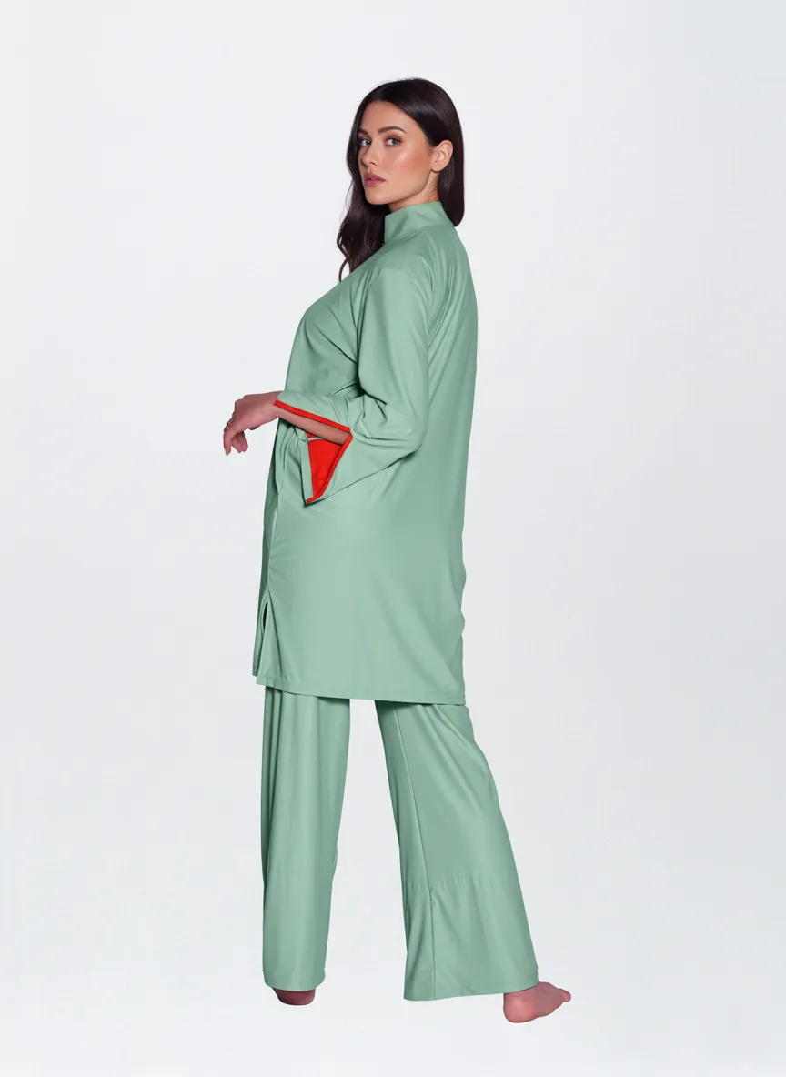 This Muslim swimwear set is designed for modest coverage and sun protection. Vista Clothing — professional OEM modest swimwear manufacturer.
