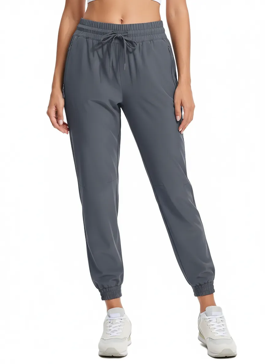 Women’s jogger pants with stretch fabric, designed for fitness, travel, and daily wear.