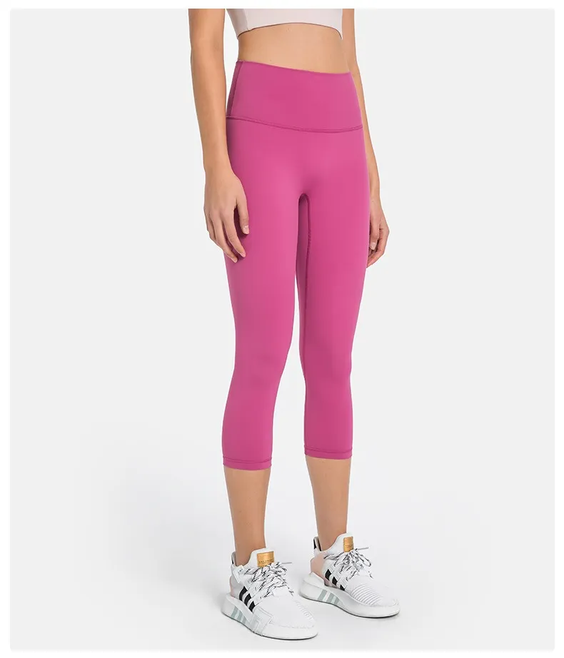 High-rise capri leggings made from stretchy fabric for yoga, training, and daily wear. OEM manufacturer for bulk orders.