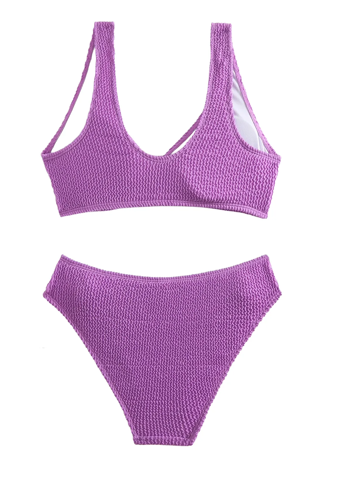 This textured bikini set is made of nylon-spandex, with UPF50+ and chlorine resistance. Vista Clothing offers OEM/ODM swimwear wholesale.