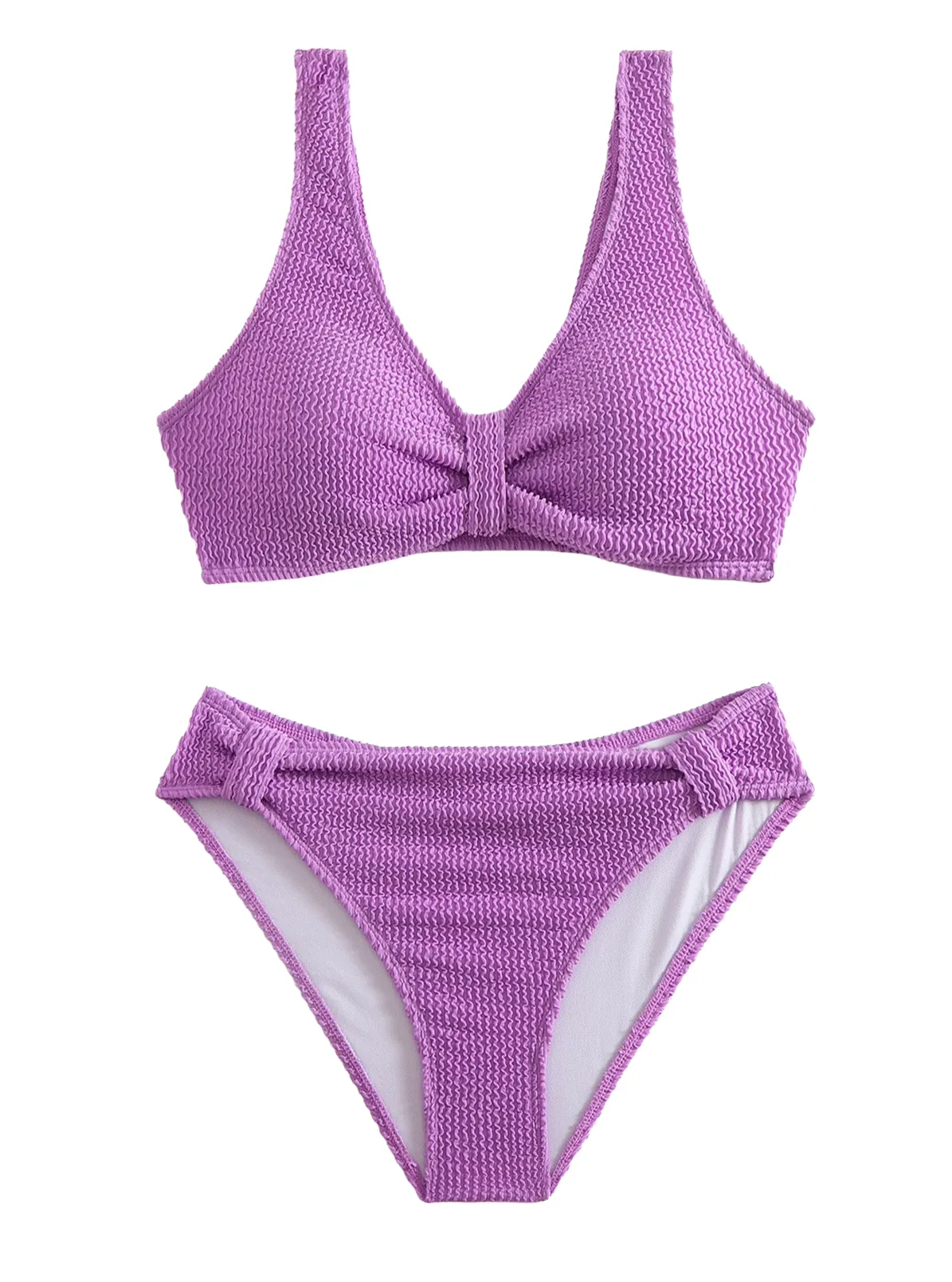 Women's Purple Textured Knot Front Bikini Set Specifications