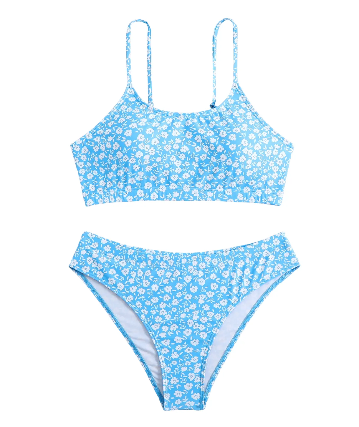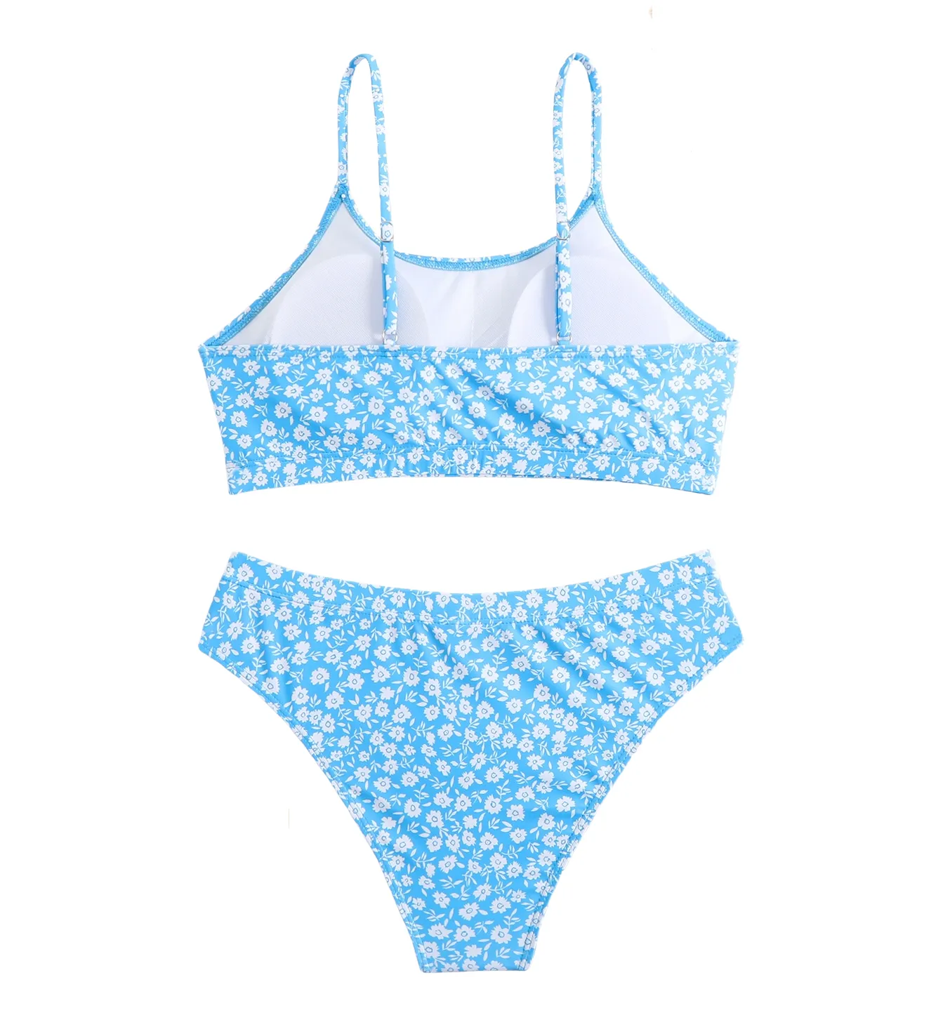 Women’s Two-Piece Swimsuit with Adjustable Straps Floral Print High Waist Bikini